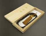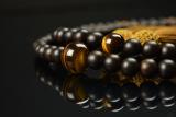 | オーソドックスに縞黒檀と虎目石を合わせています。 | 丁寧に細部まで作られています。京都の数珠職人が仕上げた日本製です。 | お数珠は桐箱に入れてお届けしております。 |